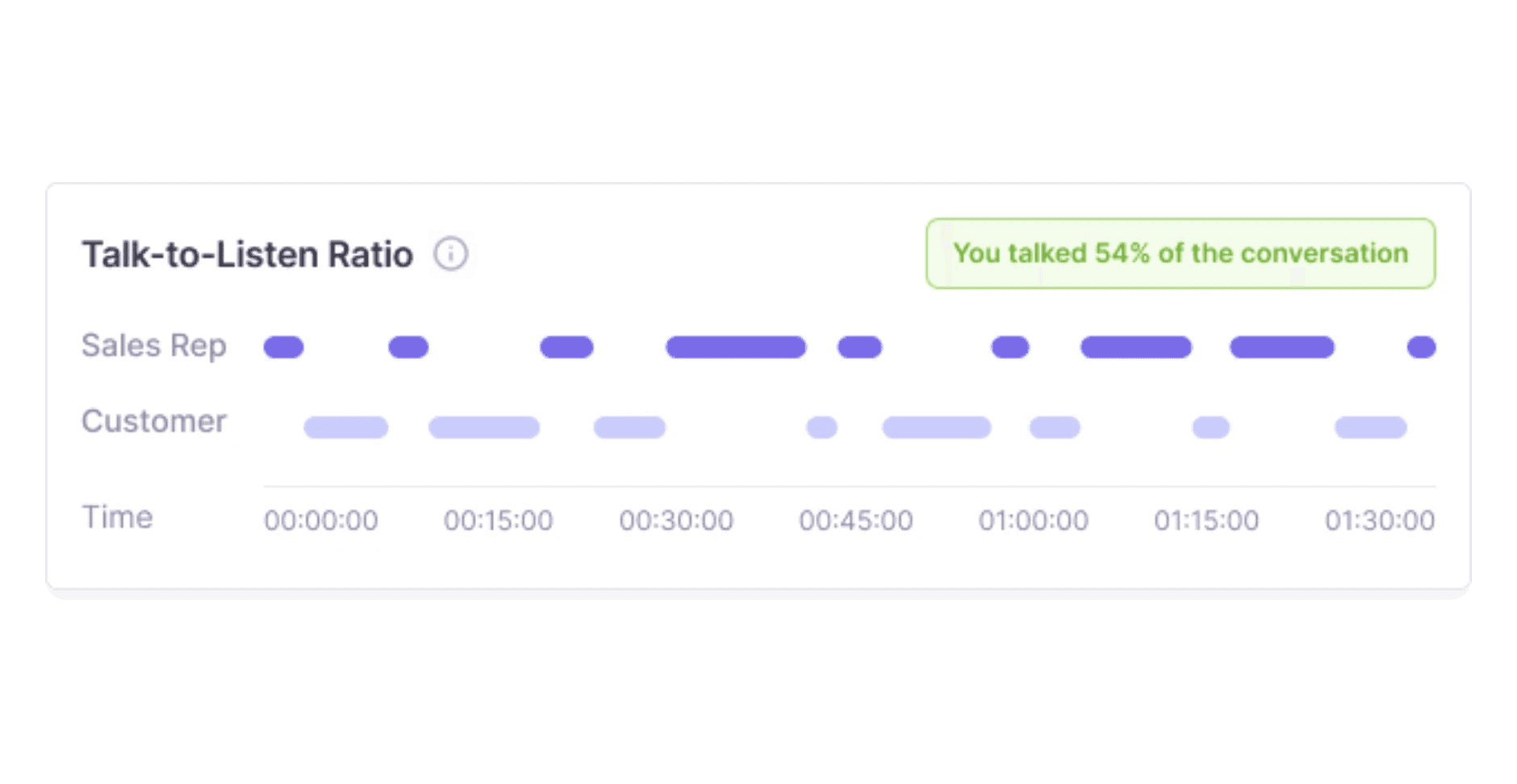 It analyzes the entire conversation and breaks down speaking time between the sales rep and the customer.