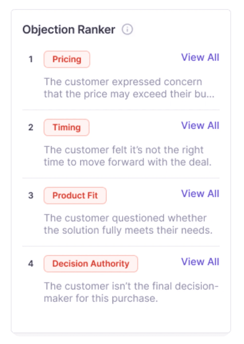 It automatically ranks customer objections from most to least discussed within a meeting.